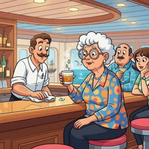 The old woman let out a soft giggle—light, almost playful, as if it belonged to another time—and lifted her glass in a small, private toast. The bartender,…