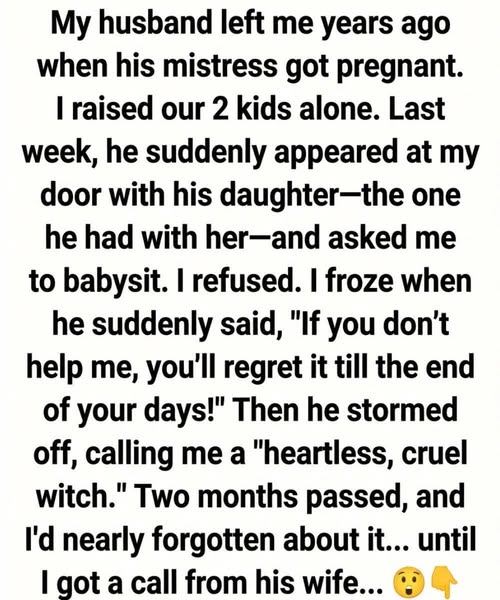 Two months later, my phone rang again. This time, it was not him, but his wife. Her voice was calm, deliberate, and careful with every word. She apologized for the situation, for the assumption that I would say yes, for not fully considering the history I had lived through. She acknowledged that I had been placed in an unfair position and asked to carry something that was never mine to carry. The call was brief, but it mattered. When it ended, I sat quietly, feeling a sense of closure I hadn’t realized I was still missing. Not because everything had been forgiven or resolved, but because I had finally trusted myself. I learned that strength does not always announce itself loudly. It is not always dramatic or visible. Sometimes, strength is simply knowing when to say no—and understanding that you do not need permission to protect the life you worked so hard to rebuild.