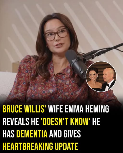 Emma has been notably open and honest about what life looks like behind the scenes. In a recent appearance on The Unexpected Journey podcast hosted by Cameron Oaks Rogers, she shared an update that was both heartbreaking and unexpectedly gentle. She explained that Bruce is not aware that he has dementia and, in her words, has “never connected the dots” about his condition. Rather than seeing this as purely tragic, Emma described it as a strange combination of blessing and curse. She expressed genuine relief that he does not fully understand the diagnosis or what it means, saying that she is “really happy” he doesn’t carry that awareness.