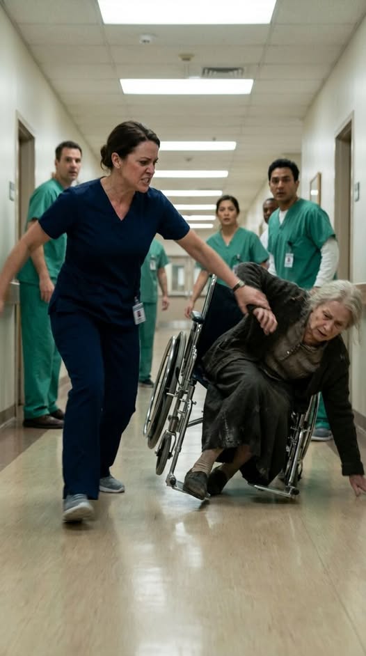 Nurse Brenda Vance, Head of Surgery, did not lower her voice. She did not soften her expression. She treated my mother not as a patient but as an embarrassment. Her words were sharp, public, and deliberately humiliating. She spoke of overdue balances, of private institutions not being shelters, of a “so-called successful son” who was surely irresponsible or imaginary. When a younger nurse tried to intervene, Brenda silenced her with a look that carried years of unchallenged authority. She grabbed the wheelchair and pulled it toward the exit as if discarding trash. My mother begged, reminding her she needed oxygen, her voice cracking with panic. The response was cruel efficiency. During the struggle, my mother’s purse spilled open, scattering peppermint candies and a worn photograph across the floor. When she tried to stop the chair, Brenda struck her—an open-handed slap that echoed in the lobby. In that moment, something fundamental broke. The room froze, not in outrage, but in fear. Brenda stood over her, already preparing to rewrite the moment as insubordination, already threatening security.