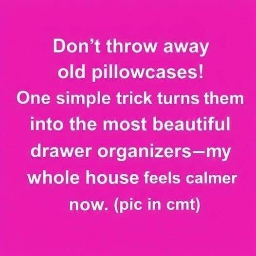 Some household wisdom never truly disappears; it simply recedes into the background, waiting for the right moment to feel relevant again. The pillowcase drawer trick is one of those quiet practices born in an era when usefulness mattered more than aesthetics and waste was not an option but a failure. Long before drawer dividers, plastic bins, and influencer-approved organizing systems, people relied on what they already had. A worn pillowcase, softened by years of washing and use, carried value even after it no longer matched a bedding set. Instead of being discarded, it was repurposed with intention. Lining drawers with old pillowcases protected clothing, softened hard surfaces, and brought a sense of order without cost or excess. This practice reflected a deeper mindset, one rooted in respect for materials and an understanding that everyday life functioned best when simplicity guided decisions.
