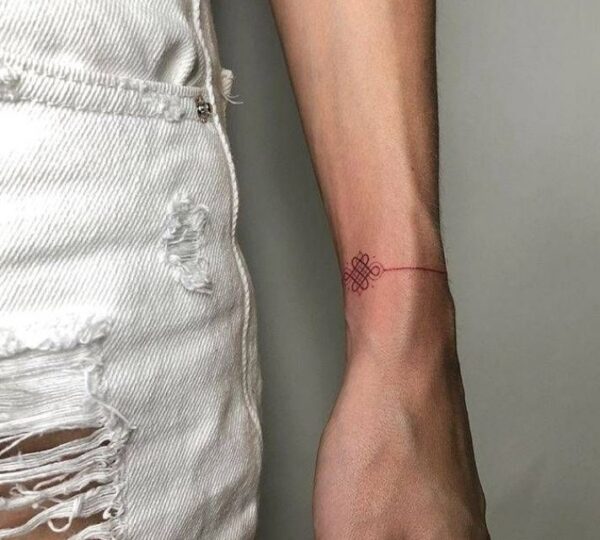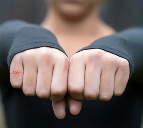 The red string tattoo originates from East Asian folklore, particularly Chinese and Japanese mythology. Known as the “red string of fate,” it represents an invisible thread that connects two people destined to enter each other’s lives. No matter how far they drift apart, how tangled circumstances become, or how much time passes, this thread will never break. The myth often features a supernatural matchmaker—sometimes called the “Old Man Under the Moon”—who binds these destined individuals together. Men traditionally wear the string on their thumb, women on their pinky, mirroring the folklore’s imagery. Today, variations may appear on wrists, ankles, or other placements, but the core symbolism—connection, destiny, and enduring bonds—remains intact.