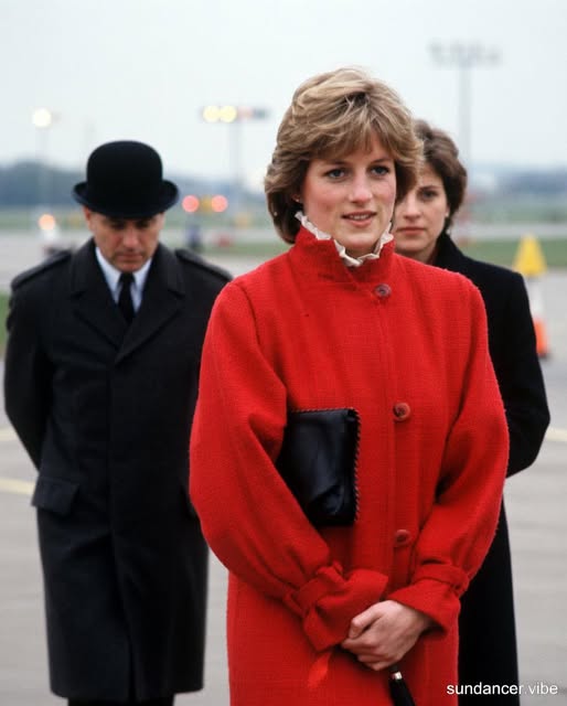 One of the most memorable early images from that period was captured in March 1981, at an airport where Diana stood saying goodbye to Charles as he prepared to leave for a five-week royal tour. She wore a striking red coat, her face marked by visible emotion as cameras clicked relentlessly around her. To the public, it was a moment of pure relatability—a young woman deeply in love, struggling with the temporary separation from the man she was about to marry.