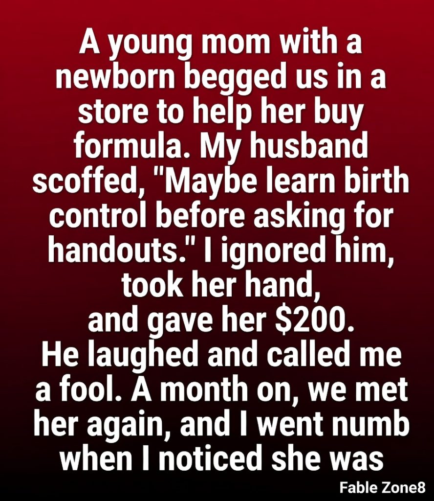 Without overthinking it, I pulled out my wallet and handed her two hundred dollars. It was more than she needed for formula, I knew that, but something about her situation made me want to give her a little breathing room, even if just for a few days.