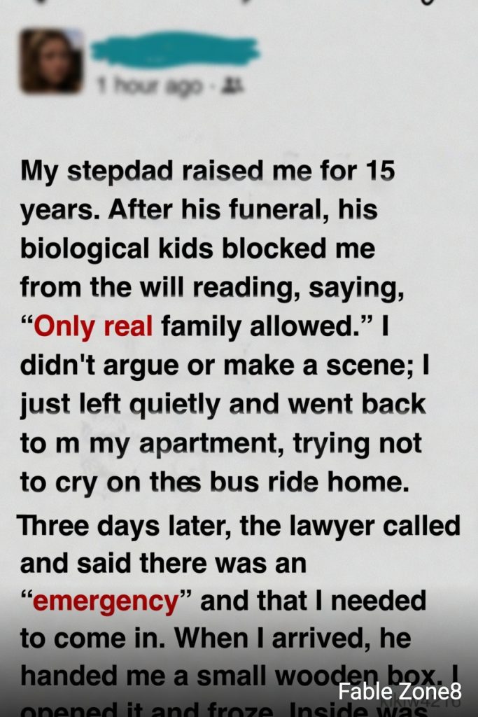 I could have reminded them of the years we spent under the same roof, of the routines we shared, of the man we all claimed to know. I could have listed every moment that proved I belonged there just as much as they did.