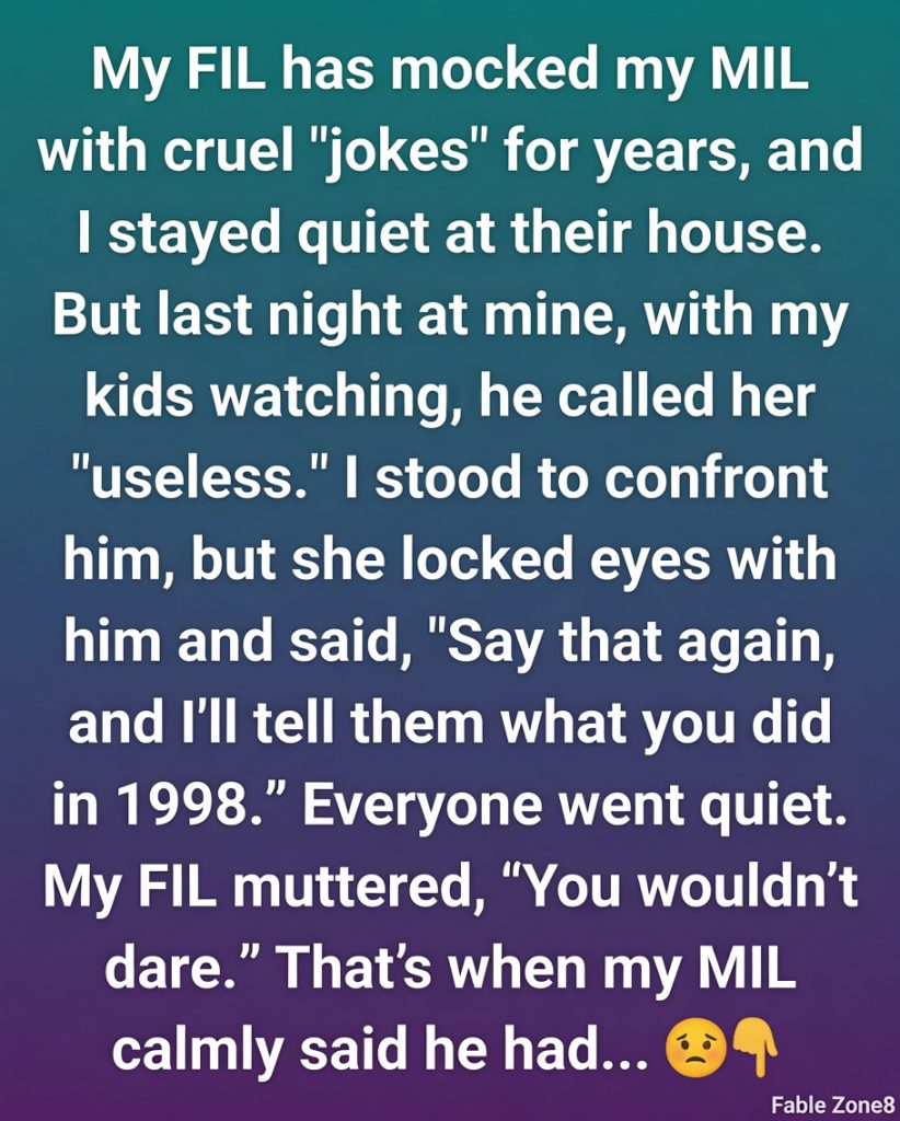 We had always known my father-in-law could be sharp. Controlling. Sometimes cruel in a joking way. But this? This felt like something deeper. Something buried.