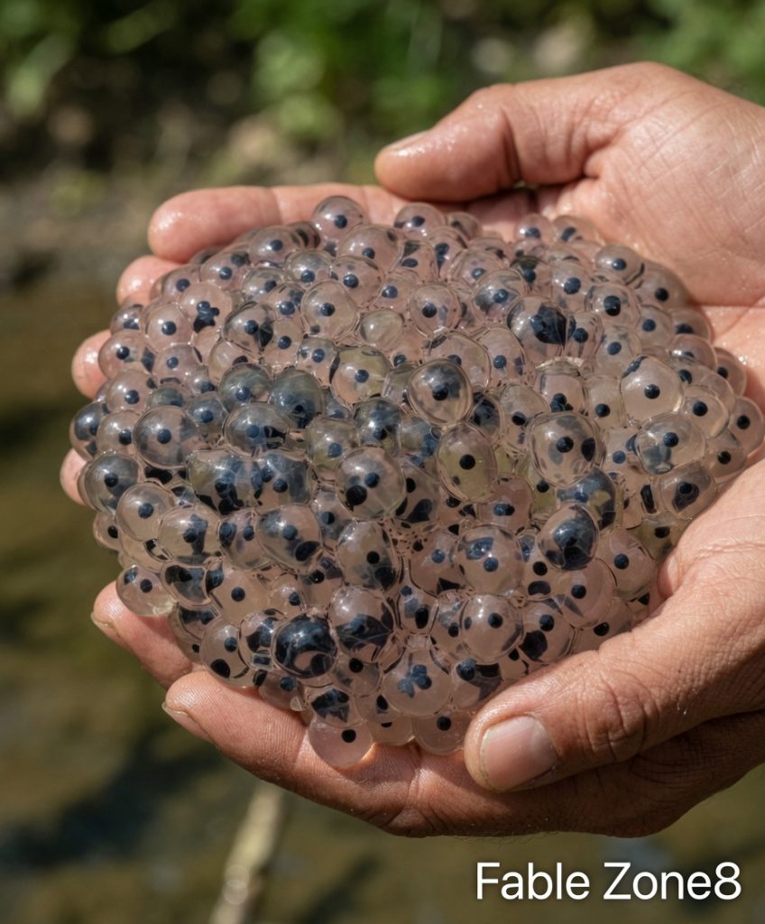 Few natural sights strike the human imagination quite like a cluster of amphibian eggs glistening in the palm of a hand—tiny, translucent spheres packed tightly together, each one centered by a dark, pupil-like core that seems to stare back. Often dubbed “eyeball eggs” across the internet, these unusual formations appear almost artificial, as though they belong in a science fiction film or an exotic dessert display. In reality, they are a perfectly natural and essential stage in the reproductive cycle of many frog species, particularly those belonging to the group commonly known as leopard frogs. Each sphere is a delicate yet highly functional life-support system, containing a developing embryo encased in a gelatinous matrix that both protects and nurtures it. The eerie resemblance to eyeballs comes from the early pigmentation of the embryo, which concentrates in a dark mass that will later develop into critical structures such as the brain and eyes. What might initially evoke curiosity or even discomfort quickly transforms into awe when one realizes the complexity and purpose embedded within these tiny, glistening orbs.