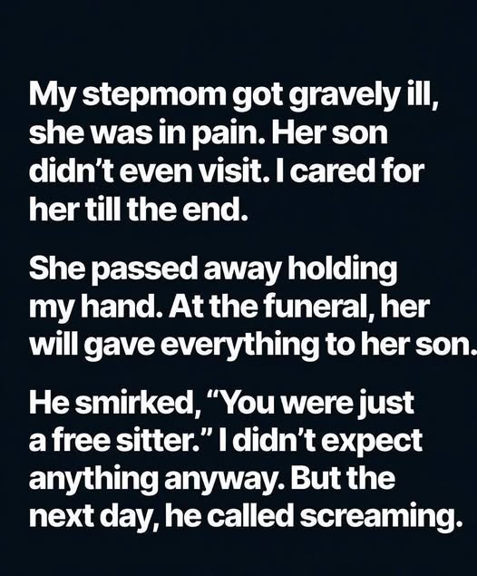 The woman I had cared for when her hands shook too much to hold a spoon. The woman I stayed up with when pain made sleep impossible. The woman I bathed, comforted, and held when even her own son found excuses to stay away.