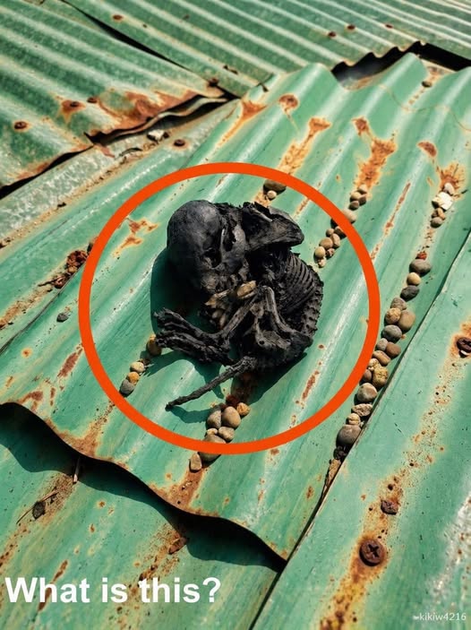 What began as a routine maintenance check quickly transformed into an experience that would linger in the homeowner’s mind long after they climbed down from the roof. Like many practical tasks, inspecting a rusted rooftop is typically uneventful—focused on leaks, corrosion, or structural wear. But on this particular day, something unusual interrupted that expectation. Resting on a weathered sheet of corrugated metal was a small, dark, shriveled form—something that didn’t immediately resemble anything familiar. Its curled posture, rigid limbs, and leathery outer texture gave it a strangely lifelike yet unmistakably lifeless presence. The figure appeared frozen in time, as though caught in a moment between life and decay. For nearly half an hour, the homeowner cautiously observed it from different angles, attempting to make sense of its identity. The longer they looked, the more unsettling it became—not because it moved, but because it didn’t. It sat there, silent and enigmatic, challenging the boundary between the known and the unknown, and triggering a visceral mix of curiosity, discomfort, and unease.
