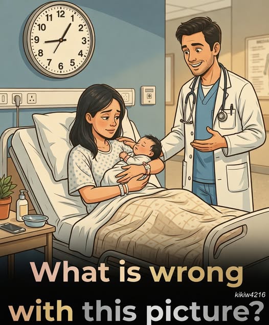 Hidden within this ordinary moment is a subtle visual trick—one so small that the majority of viewers fail to notice it on their first attempt. The challenge is deceptively straightforward: find the unusual detail. Most people scan the room, glance at the mother and child, perhaps notice the doctor, and then assume there is nothing more to see. But the key lies in an object so familiar that the brain barely registers it consciously—a wall clock.